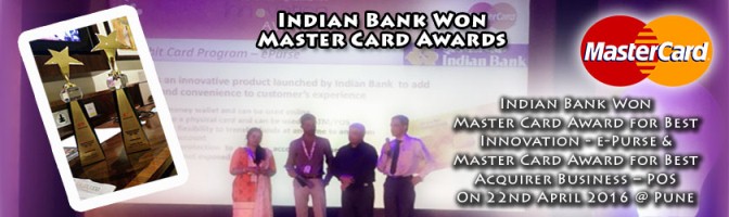 • इंडियन बैंक ने मास्टर कार्ड अवार्ड जीता