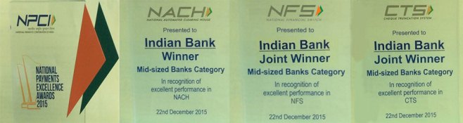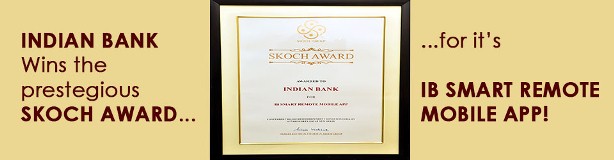 वित्तीय वर्ष 2021-22 में एसएचजी बैंक लिंकेज कार्यक्रम के लिए तमिलनाडु वुमन डेवलपमेंट कार्पोरेशन द्वारा दिनांक 29.12.2022 को इंडियन बैंक को सभी सार्वजनिक क्षेत्र के बैंकों में सर्वश्रेष्ठ बैंक का अवार्ड प्राप्त हुआ।