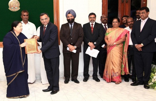 • इंडियन बैंक के प्रबंध निदेशक एवं मुख्य कार्यपालक अधिकारी श्री महेश कुमार जैन को ‘बेस्ट परफॉर्मिंग पब्लिक सेक्टर बैंक अवार्ड’ (2012-13 एवं 2013-14 के दौरान स्वयं सहायता समूहों को सर्वाधिक ऋण देने के लिए) प्रदान करती हुई तमिलनाडु की माननीय मुख्य मंत्री, सेल्वी जे जयललिता।