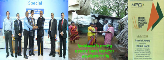 • चेन्नै में बाढ़ में पीडित लोगों को मोबाइल माइक्रो – एटीएम उपलब्ध कराने के लिए विशेष पुरस्कार दिया गया।