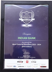 दिल्ली में आयोजित फिक्की सीएमएसएमई के वार्षिक एमएसएमई शिखर सम्मेलन में इंडियन बैंक को “एमएसएमई में सेवा प्रदान करने के लिए सर्वश्रेष्ठ बैंक” के रूप में सम्मानित किया गया।